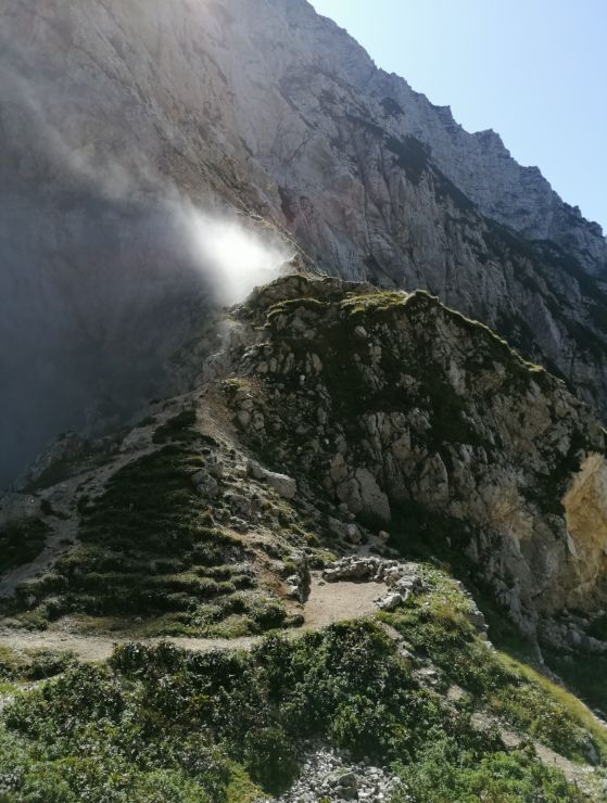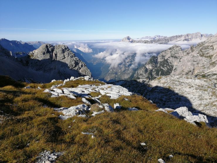 Po slabi uri sem prišla do razpotja Dovška vratca, do vrha Bovškega Gamsovca pa hodila še kakšne pol ure. Vmes je nekaj zajl ter klinov, kar mi je bilo še v posebno veselje. Dan je bil kot umit, igra narave pa tokrat zares veličastna – dolina Vrata v popolni megli, ki je segala točno do sedla Luknja, ki predstavlja mejo med Vrati in Trento. Slednja se je kopala v pozno poletnem soncu in čakala, da se ponovno napotim na njene stezice.