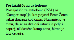 mesti za avtodome in z dodatnim servisnim mestom. Parkirišče je