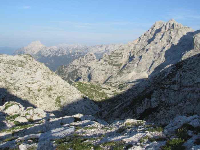 Pot me je z oznakami vodila desno proti Stenarskim vratcem ter me razvajala s pogledi na Triglav, Bovški Gamsovec, Pihavec, Planjo, Križ, Razor, vse do Pogačnikovega doma in Trente pod njim. Vzpela sem se, pa spet hodila po ravnem, pa spet vzpela in bila po uri hoje od Dovških vratc na vrhu. Kot vedno sem si želela v spomin vtisniti neponovljiv dan in poglede.