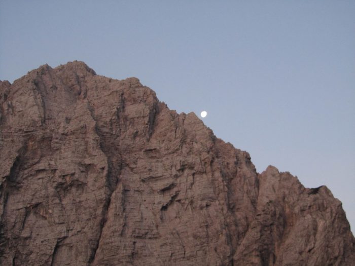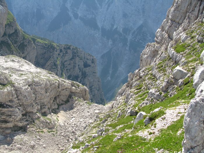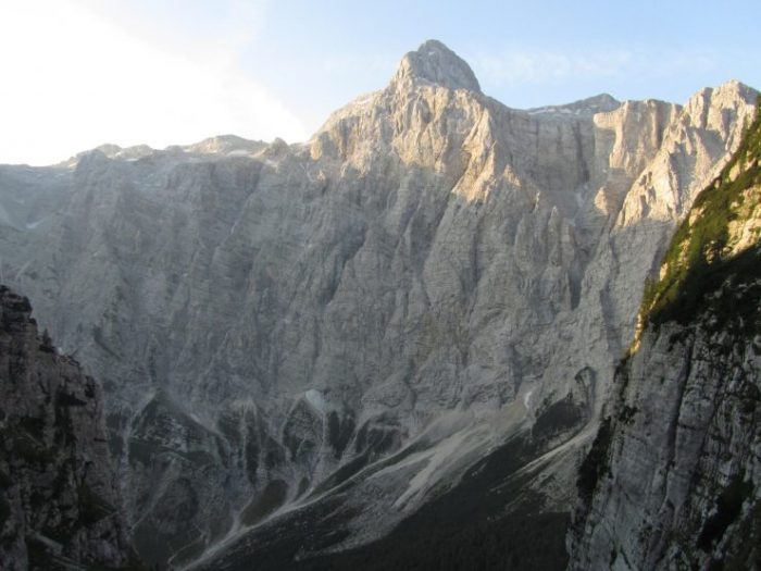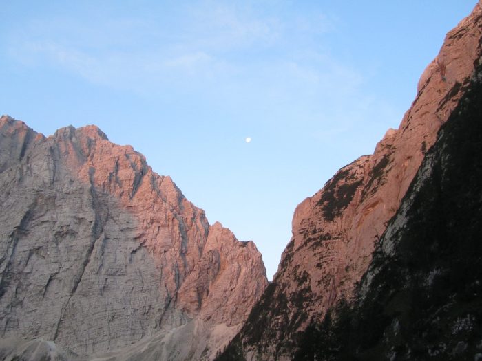 Vzpenjala sem se skozi bukov gozd, na 1300 metrih nad morjem pa se je pred mano pojavilo žuborenje skromnega studenčka, ki v sušnem obdobju ne pride na plano. Še malo naprej in sem bila ven iz gozda, pod vznožjem Sovatne in končno sem bila nagrajena s svežimi podobami jutra v gorah. Še sem lahko opazila obris polne lune. S pogledom sem pozdravila Triglavsko severno steno in se nasmehnila Sfingi. Kot vedno sem se razveselila nekaj jeklenic in klinov, malico pa sem načrtovala na razpotju na Dovških vratih.