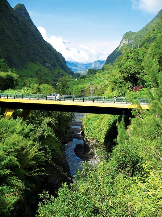 Otočani so večinoma temnopolti potomci nekdanjih sužnjev in belih kolonizatorjev. Reunion premore okoli 850.000 prebivalcev in presenetljivo veliko avtomobilov francoskega porekla, kar priča o dokaj visokem standardu, saj je otok del Evropske unije. Domačini so deležni varnega socialnega sistema, za šolstvo, zakonodajno oblast in finančno politiko pa skrbi matična Francija. Plačilno sredstvo na otoku je evro, cene pa so žal na ravni francoskih, ob bistveno slabših plačah. A kljub temu se mi je zazdelo življenje na otoku prav idilično: bujno rastlinje vsepovsod, obale, obdane z vedno toplim morjem in hribovita notranjost. Ko zapustim soparno ravnico ob obali, se kmalu znajdem v popolnoma drugem svetu. V eni izmed sotesk, ki predstavljajo najlažji dostop v hribovito notranjost, se odpre pogled na strme v nebo kipeče vrhove, porasle z bujnim tropskim rastjem. K razpenjeni reki, nad katero se vije ovinkasta cesta, se vsepovsod spuščajo potočki. Cesta je speljana do manjših naselij v notranjosti. Tu se soteska razširi v veliko dolino, obkroženo z visokimi vrhovi. Ti kraji so bili v času suženjstva skoraj nedostopni. Za bogate francoske lastnike plantaž pa tudi nezanimivi. Prvi so jih naselili šele pobegli črni sužnji. Danes se v gore umikajo dopustniki. Najvišja gora je kar 3070 metrov visoki vrh Piton de Neiges (Snežnik), ki je tako najvišja gora v Indijskem oceanu! Ime mu kljub tropski klimi pristaja, saj je vrh že večkrat pobelil sneg. Dobrih šest ur trajajoči vzpon na goro je možno opraviti v enem dnevu. A zaradi muhastega vremena z rednimi popoldanskimi pooblačitvami in deževnimi nalivi, je priporočljivo prespati v planinski koči pod vrhom.