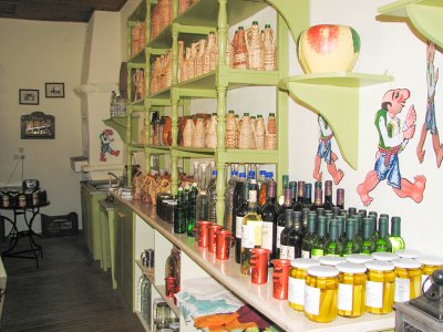 Pomemben del Giorgosovega projekta je trgovina Mirovolon, ki je ravno tako urejena v stari hiši. Nekoč so v njej prodajali vino. Danes so poleg vina naprodaj še drugi proizvodi lokalnih pridelovalcev: mila z dodatkom olivnega olja, testenine, likerji, žganje, sir, med, dišavna zelišča, olivno olje, marmelade. Kakšno stvar pridela tudi Giorgos, saj ima na robu vasi urejen zelenjavni vrt. ”Vrtnarjenje je zame najboljša psihoterapija!” pravi. ”In večerno posedanje v moji kavarni To Liakoto.” Ime po grško pomeni ”Kraj poln sonca”. Res pravo ime za kavarno. Še posebno ob sončnem zahodu, ki ga lahko občudujete z razgledne terase. Razgled sega daleč preko zaobljenih gričev vse do gorovja Lefka Ori – Bele gore. Zgovorno ime, še posebno v zimskih mesecih, ko so gorski vrhovi zasneženi. Na kavarniški terasi sem se sredi nedelje poslovil od Giorogsa. V lokalu je bilo veliko gostov. Tudi zaradi lokalnih glasbenikov, ki so poskrbeli za veselo razpoloženje. Grki se res znajo poveseliti, ne glede na pereče gospodarske težave.