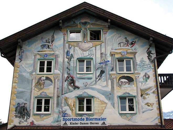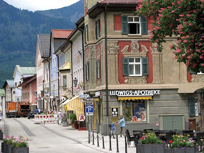 Za mesto so značilne bavarske poslikave na številnih hišah. Najbolj atraktivne sem našel v bližnjem kraju Oberammergau. Še posebno so me navdušile podobe iz znanih Grimmovih pravljic. Srečal sem Muzikante iz Bremna, Rdečo kapico, Janka in Metko … Kraj je še bolj kot po freskah znan po pripravi pasijonske igre. Prvič so jo v zahvalo ob koncu dolgoletne vojne in kuge priredili leta 1634. Uprizoritev Jezusove zadnje poti pripravijo vsakih deset let, naslednja bo na vrsti leta 2020. Igra je prava paša za oči, saj biblično zgodbo uprizarja več kot 2000 domačih amaterskih igralcev. Nastopajo v odprtem letnem gledališču. Igra traja kar devet ur, vsakokrat pa odigrajo več kot sto predstav, ki si jih ogleda več kot pol milijona gledalcev.