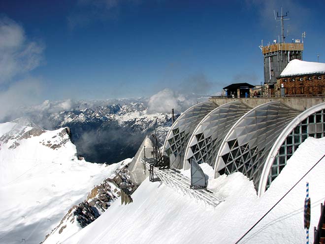 Na vrhu Zugspitze danes stojijo koča in razgledni restavraciji – ena na avstrijski in druga na nemški strani. Z vrha se ponujajo enkratni razgledi na vse strani. V sončnem dnevu je mogoče občudovati več kot 400 gorskih vrhov v Nemčiji, Avstriji, Švici in Italiji. Na nemški strani od leta 1896 stoji koča, ki jo je postavilo alpinistično društvo iz Munchna. V njej od leta 1931 deluje pošta, ki ima še danes svojo poštno številko. Zato so pošiljke, poslane od tu priljubljene med numizmatiki. Del razgibanega vrha zavzema tudi vremenska postaja in raziskovalno središče. Razpoznaven simbol gore je križ zlate barve, ki ga je prvič že leta 1851 dal postaviti duhovnik Chrisoph. Duhovnik je bil tudi planinec in meteorolog.