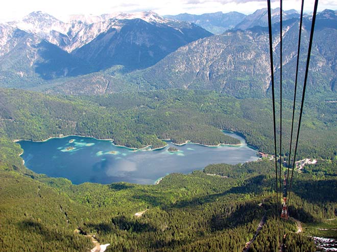 Nad športnim središčem pozornost vzbuja najvišja nemška gora Zugspitze (2962 m). Njene stene so prvič premagali leta 1820, danes pa se je mogoče v bližino vrha pripeljati kar z vlakom! Gorska železnica je speljana skozi tunel do kraške planote Zugspitzplatt (2588 m). Od tu je do vrha mogoče pot nadaljevati peš, a sem se raje odločil za udobnejšo možnost, vožnjo z gondolo. Iz Garmisch-Partenkirchna električni motorni vlaki vozijo do vasi Grainu. V tem delu doline se začne zobata železnica sistema Riggenbach, za katerega je značilen srednji tir v obliki ozke lestve, po kateri teče velik zobnik. Nekoč je bila v Grainu potrebna zamenjava lokomotive, danes pa sodobni motorni vlaki lahko vozijo po obeh sistemih železniške proge. Naslednja postaja je pri jezeru Eibsee, potem pa se začne proga strmo dvigovati. Počasi se skozi visoke smreke odprejo razgledi na dolino z jezerom. Žal se ne ponujajo dolgo, saj vlak kmalu za predzadnjo postajo izgine v tunelu in zadnji del poti vse do končne postaje poteka skozi notranjost gore Zugspitze. Celotna proga je dolga 19 km.