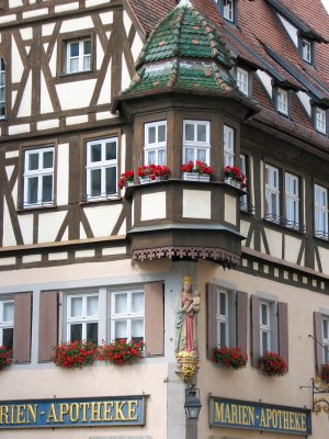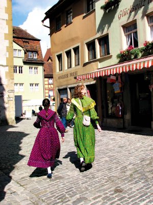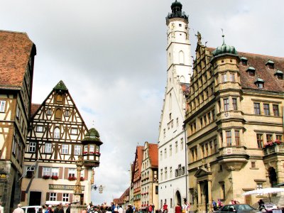 Prevod imena mesta pomeni Rdeča utrdba ob reki Taubera, na kar danes spominjajo rdeče strehe hiš, ki se stiskajo za dobre štiri kilometre dolgim kamnitim obzidjem. Nad njim se dviguje deset ohranjenih obrambnih stolpov, v mesto pa vodi več obokanih vrat. Skozi katerakoli izmed njih lahko vstopite v pravljični svet prikupnih hiš, opasanih z lesenimi tramovi. Vse po vrsti so zgledno obnovljene, v mnogih pa so urejene trgovine in obrtniški lokali, na katere opozarjajo umetelno izdelani kovinski izveski. Kovaštvo je ena izmed tradicionalnih obrti, ki je tod preživela zahvaljujoč obisku turistov. Okrasni predmeti iz kovanega železa in pločevine so marsikje naprodaj ali pa le krasijo izložbe, gostinske lokale pa tudi domače vrtove. V družbi nekaj mogočnih cerkva vzbuja pozornost občudovanja vredna mestna hiša. Nas je navdušil predvsem več kot šestdeset metrov visok stolp, s katerega je bilo srednjeveško mestece videti kot na dlani.